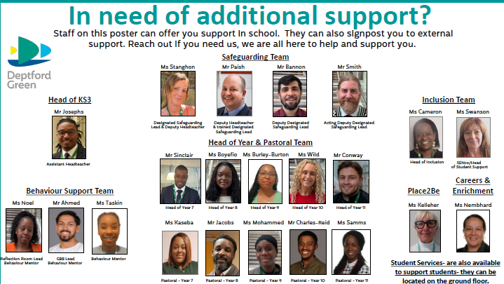 At Deptford Green School we provide outstanding pastoral care. We pride ourselves on being a fully inclusive, diverse school with creativity and community at its heart. Our GREAT values (Growth; Respect; Equality; Accountability; Togetherness) underpin all that we do to ensure our students are happy and feel safe so they can flourish academically.
